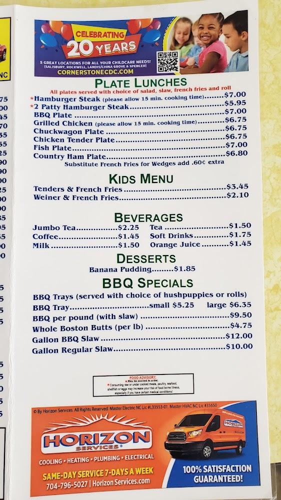 Many patrons appreciate the small plates meant for sharing. The awesome BBQ specialties capture the essence of southern cooking. With an average price of $3.86 per dish, guests enjoy homemade flavors without breaking the bank. Pair your meal with tasty beverages like jumbo tea or coffee for the perfect dining experience. Don't forget to leave room for dessert, like the famous banana pudding!